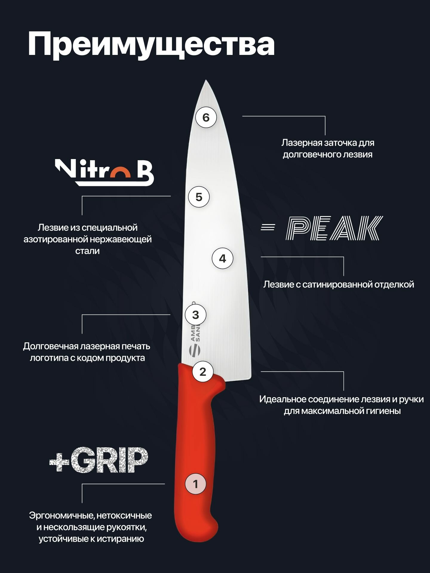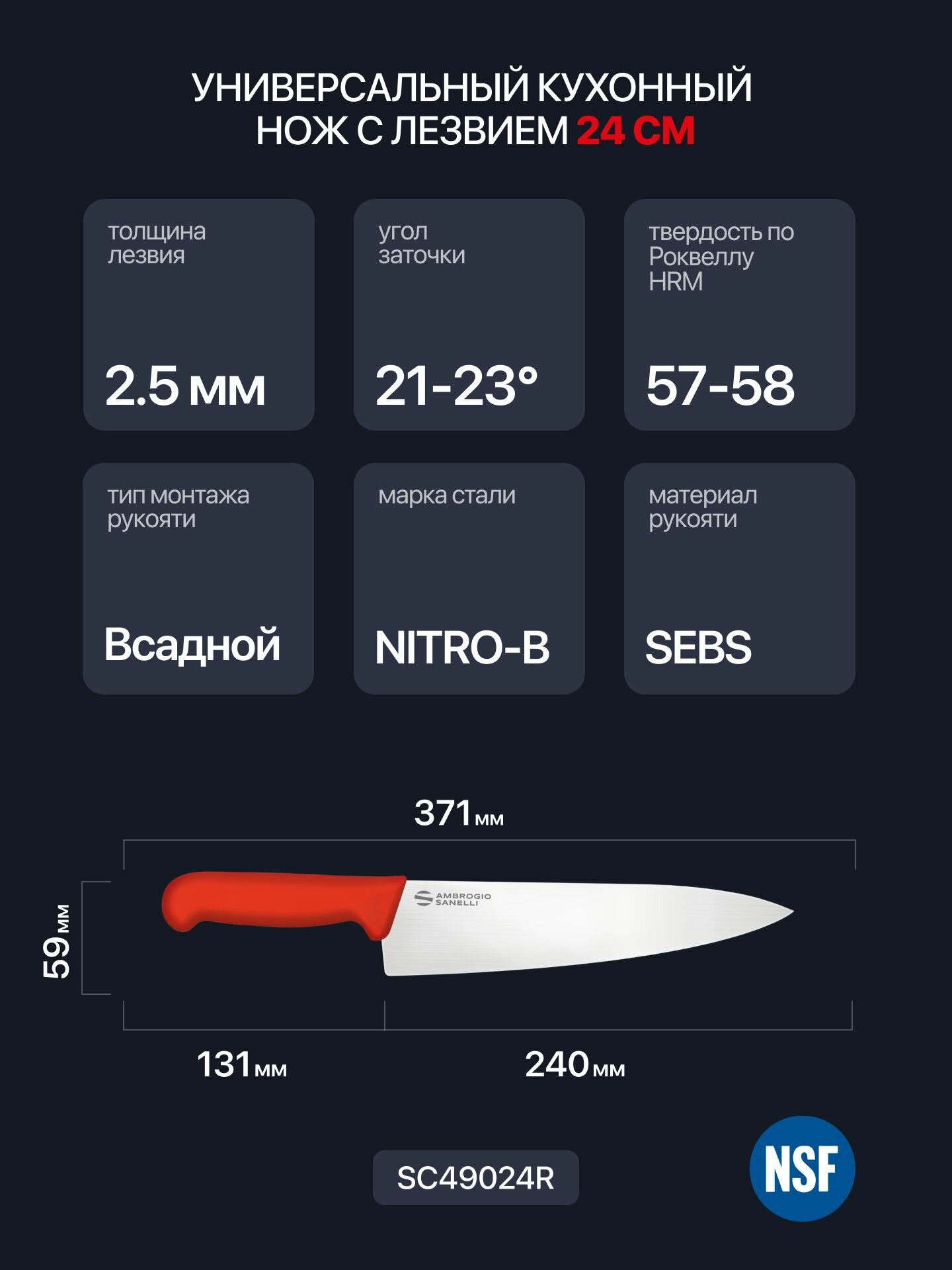 Нож универсальный 24 см поварской Sanelli Ambrogio SC49024R / красная ручка / профессиональный: сравнение цен, характеристики, фото, актуальное наличие и цены.
