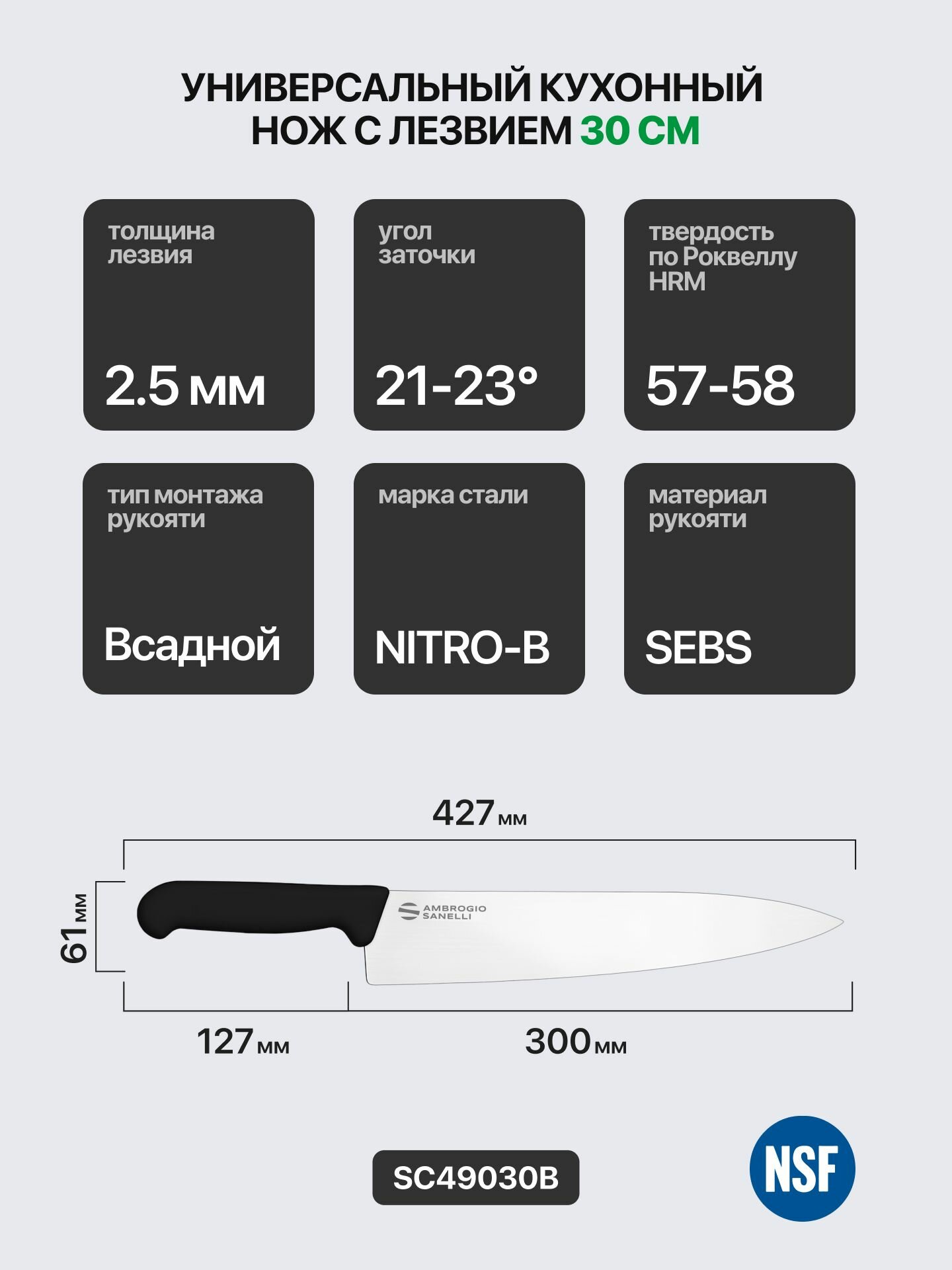 Нож универсальный 30 см поварской Sanelli Ambrogio SC49030B / профессиональный: сравнение цен, характеристики, фото, актуальное наличие и цены.