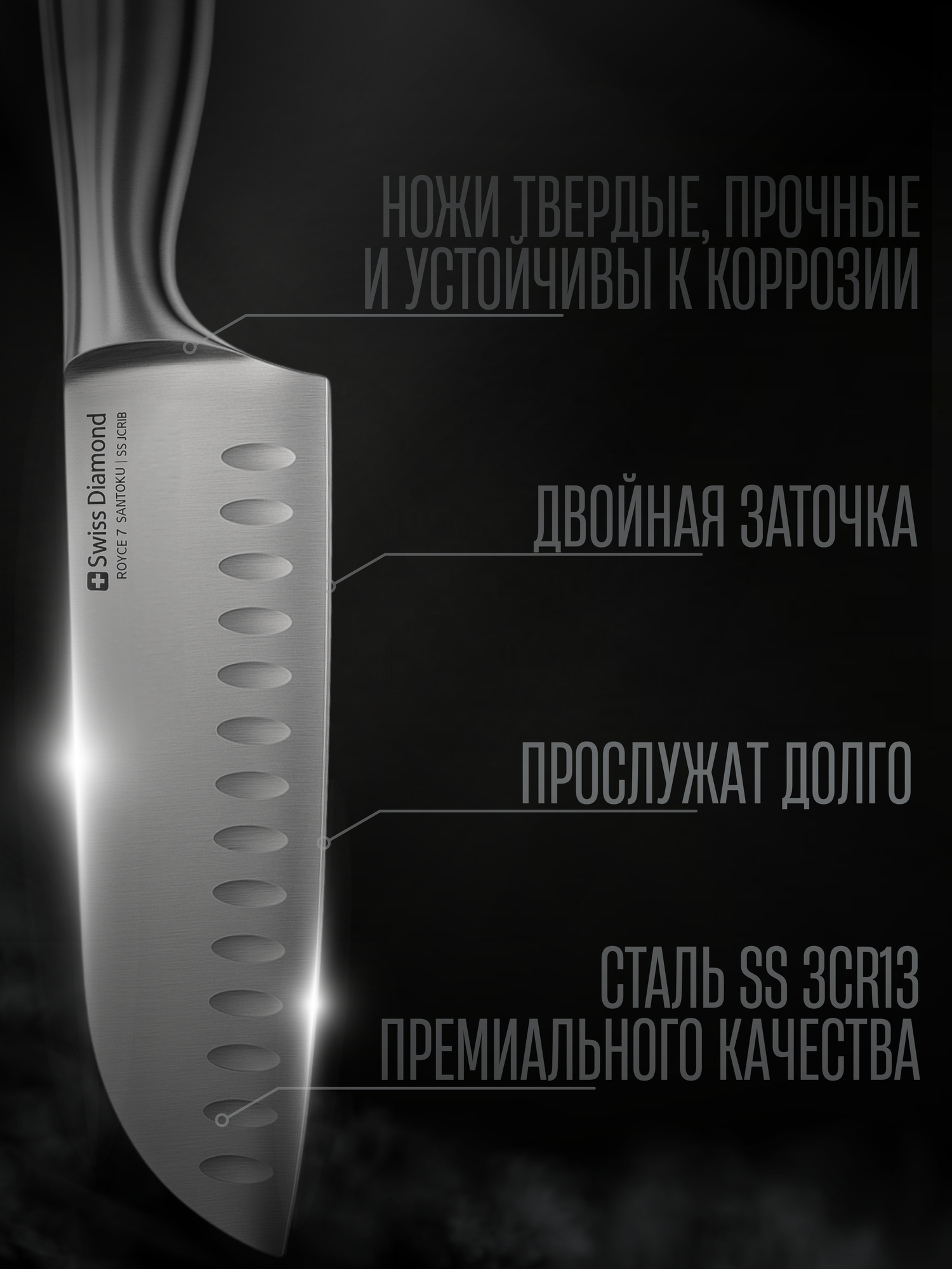 Купить Нож универсальный SANTOKU, Swiss Diamond Royce, 18 см, Швейцарское премиум качество с доставкой по всей России.