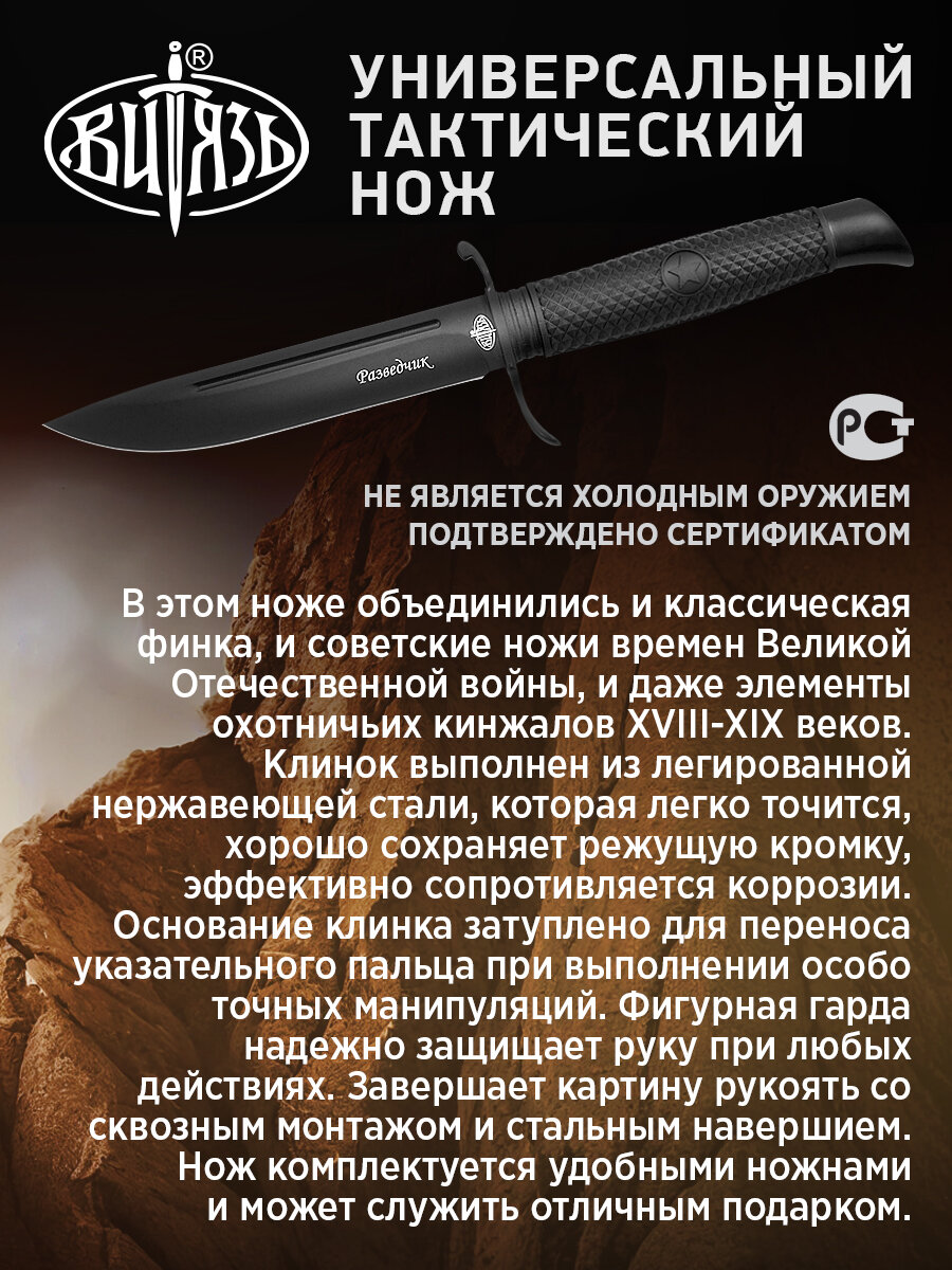Нож универсальный Витязь B5400-1 (Разведчик), полевой «тактик», сталь 65Х13, кожаный чехол: сравнение цен, характеристики, фото, актуальное наличие и цены.