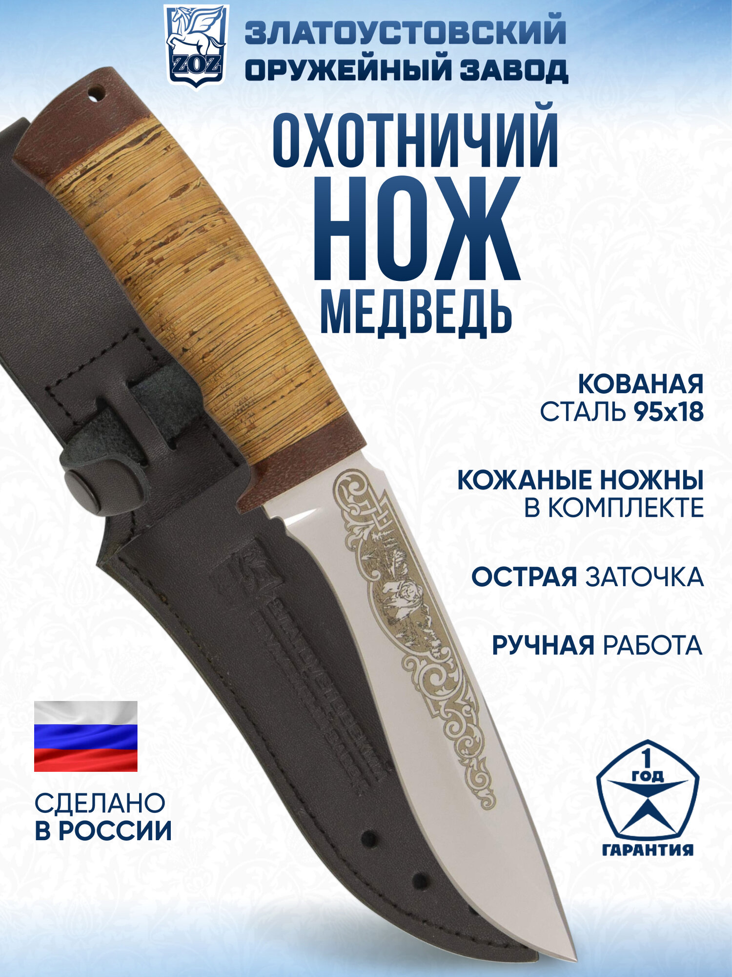Купить Нож Златоустовский оружейный завод «Медведь» (сталь 95×18, береста-текст.) с доставкой по всей России.