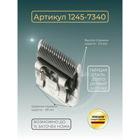 Ножевой блок Moser 1245-7340 изготовлен из высококачественной твердосплавной стали с острой лазерной заточкой. Нож предназначен для стрижки собак и кошек различных пород с любым типом шерсти и густым подшёрстком (нож также прекрасно справляется со стрижкой волос у людей). У этой модели ножа американский стандарт длины, и она полностью идентична конструкции ножевого блока Moser 3 мм. Высота шерсти при стрижке питомца данной моделью ножа составляет 2,5 мм, и используется грумерами при стрижке корпуса собак. Производитель WAHL НЕ рекомендует использовать металлические насадки 1247-7440 с этой моделью ножа, так как из-за конструктивной особенности (верхняя гребёнка частая) ножевой блок 2,5 мм плохо захватывает волоски, и мягкая тонкая шерсть не стрижётся с насадкой.