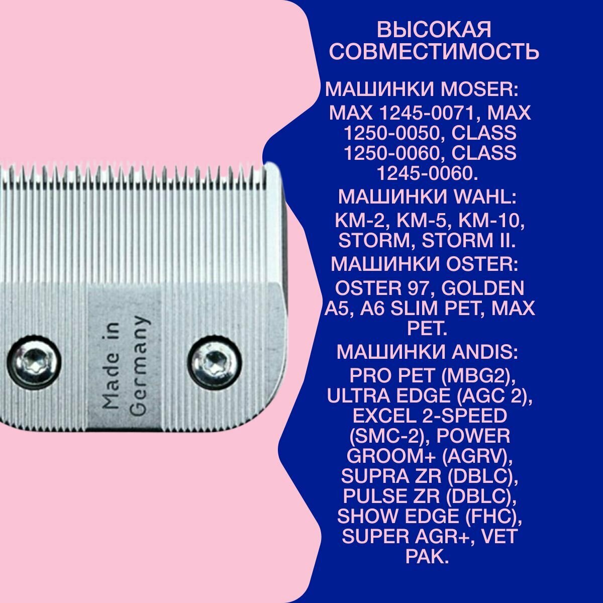 подходит к машинкам - тип 1245, 1250, Moser Max 45, Max 50, Class 45, Class 50, WAHL KM2, KM5, KM 10, Avalon