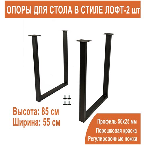 Ножки для стола в стиле Loft, в комплекте 2 опоры без столешницы. Имеет устойчивую прямоугольную форму. Винтовое крепление обеспечивает надежность и долговечность фиксации. Подстолье выполнено из стали, рассчитано на нагрузку в 60 кг. С помощью регулирования основания можно увеличить высоту до 87 см. Для покраски применяется порошковая полиэфирная RAL9005 матовый муар. Пластина крепежная к столешнице размером 100 х 80 х 2 мм. имеет четыре крепёжные отверстия диаметром 6 мм. Опора изготовлена из профильной трубы 50 х 25 х 1,5 мм.