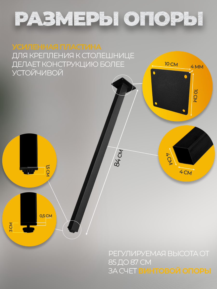Ножки опоры для стола Железное решение Комплект квадратных ножек 85-87 см Опора Лофт черные, 2 шт.: сравнение цен, характеристики, фото, актуальное наличие и цены.