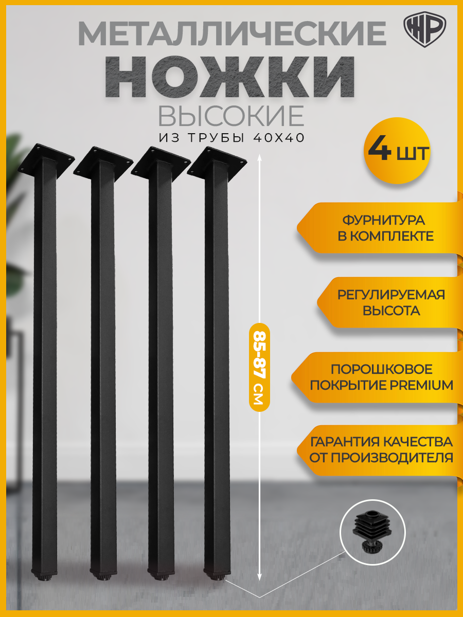 Ножки опоры для стола Железное решение квадратные высотой 85-87 см Комплект регулируемых ножек Лофт черные, 4 шт.: сравнение цен, характеристики, фото, актуальное наличие и цены.