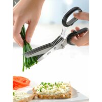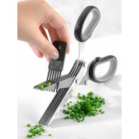 Ножницы для зелени " Gefu" станут незаменимым кухонным аксессуаром. Ножницы имеют сразу 5 пар лезвий из высококачественной нержавеющей стали Лезвия имеют специальную форму, благодаря которой зелень аккуратно нарезается и сохранят яркий аромат. При помощи таких уникальных ножниц можно быстро нарезать зелень для салатов, мясных блюд, гарниров и прочих кулинарных произведений. Удобные рукоятки выполнены из пластика с прорезиненной поверхностью. Для простоты очистки ножницы оснащены специальной щеткой для лезвий. Такой функциональный аксессуар понравится любой хозяйке.