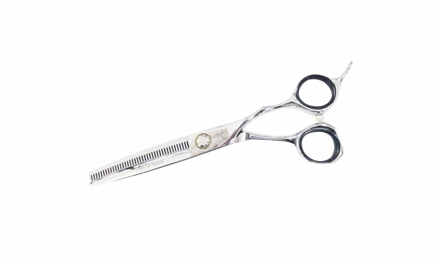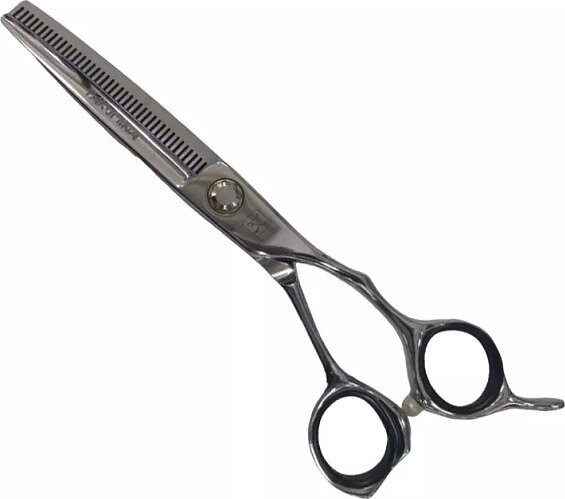 Элегантные эргономичные ножницы для фмлмровки Katachi Supreme Takumina из серии Katachi 4D – это высококачественные профессиональные парикмахерские ножницы, способные конкурировать с аналогами наиболее популярных мировых производителей. Филировочное полотно из высококачественной японской стали марки 440С оснащено 40 зубцами с насечкой. Это позволяет получить 35-40% срезанных волос за один «шаг». Новая винтовая система с гайкой скрытого типа, оснащённая полуоткрытым микроподшипником и системой Mini-click, позволяет идеально отрегулировать натяжение режущих полотен в считанные секунды. Микроподшипник обеспечивает стабильную мягкость хода, гарантирует полное отсутствие люфта в креплении полотен и увеличивает срок службы ножниц. Отдельного внимания заслуживает эргономика ножниц. Великолепно отработанные кольца с небольшим смещением для большого пальца обеспечивают комфорт кисти руки при работе любой техникой стрижки. Литой упор для мизинца, комфортное расположение колец, продуманная эргономика ручек – всё это в совокупности нацелено на обеспечение стилисту лёгкости и удобства при длительной работе ножницами. Описание и основные характеристики: • Высококачественная японская сталь марки 440С • Кольцо для большого пальца с небольшим смещением • Филировочное полотно с 40 зубцами • срез 35-40% за один «шаг» • Винтовая группа с системой Mini-click • Встроенный полуоткрытый микроподшипник • Стопор-амортизатор со встроенным металлическим винтом • Литой упор для мизинца • В комплекте съёмные пластиковые кольца, масло и замшевая салфетка • Упаковка X-Pack: картонный бокс + пластиковая рамка на подставке с прозрачной силиконовой плёнкой