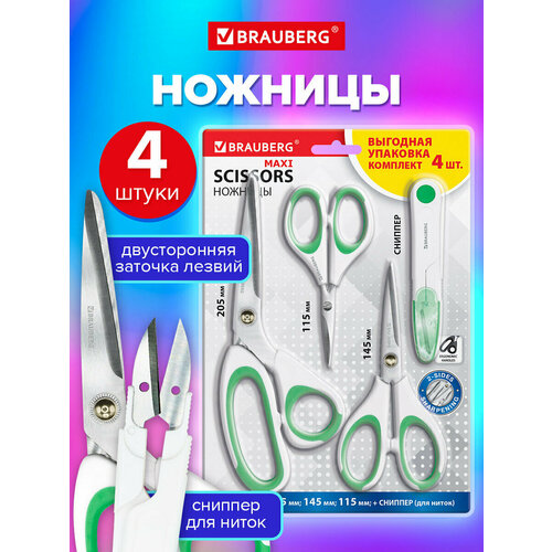 Купить Ножницы канцелярские универсальные, сниппер для ниток набор 4 шт, для бумаги и картона, для школы и офиса, бело-зеленые ручки, Brauberg Maxi, 272982 с доставкой по всей России. Ножницы канцелярские универсальные, сниппер для ниток набор 4 шт, для бумаги и картона, для школы и офиса, бело-зеленые ручки, Brauberg Maxi, 272982: сравнение цен, характеристики, фото, актуальное наличие и цены.