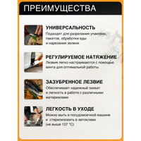 идеально подходят для обработки продуктов и разрезания упаковок на кухне, зазубренное лезвие хорошо удерживает материал