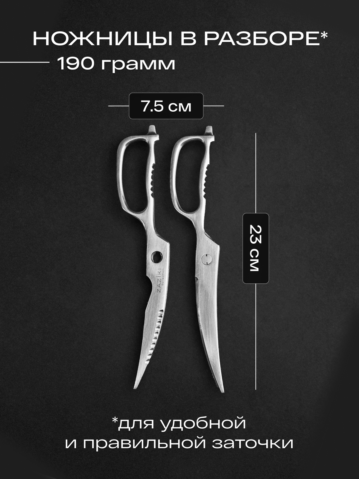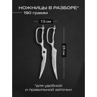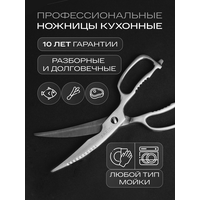 Ножницы кухонные универсальные Zaziki для птицы и рыбы, металлические разборные для нарезки с орехоколом, серебристые представляют собой идеальный выбор для любого кулинара, кто ценит не только качество но и эстетику на кухне!