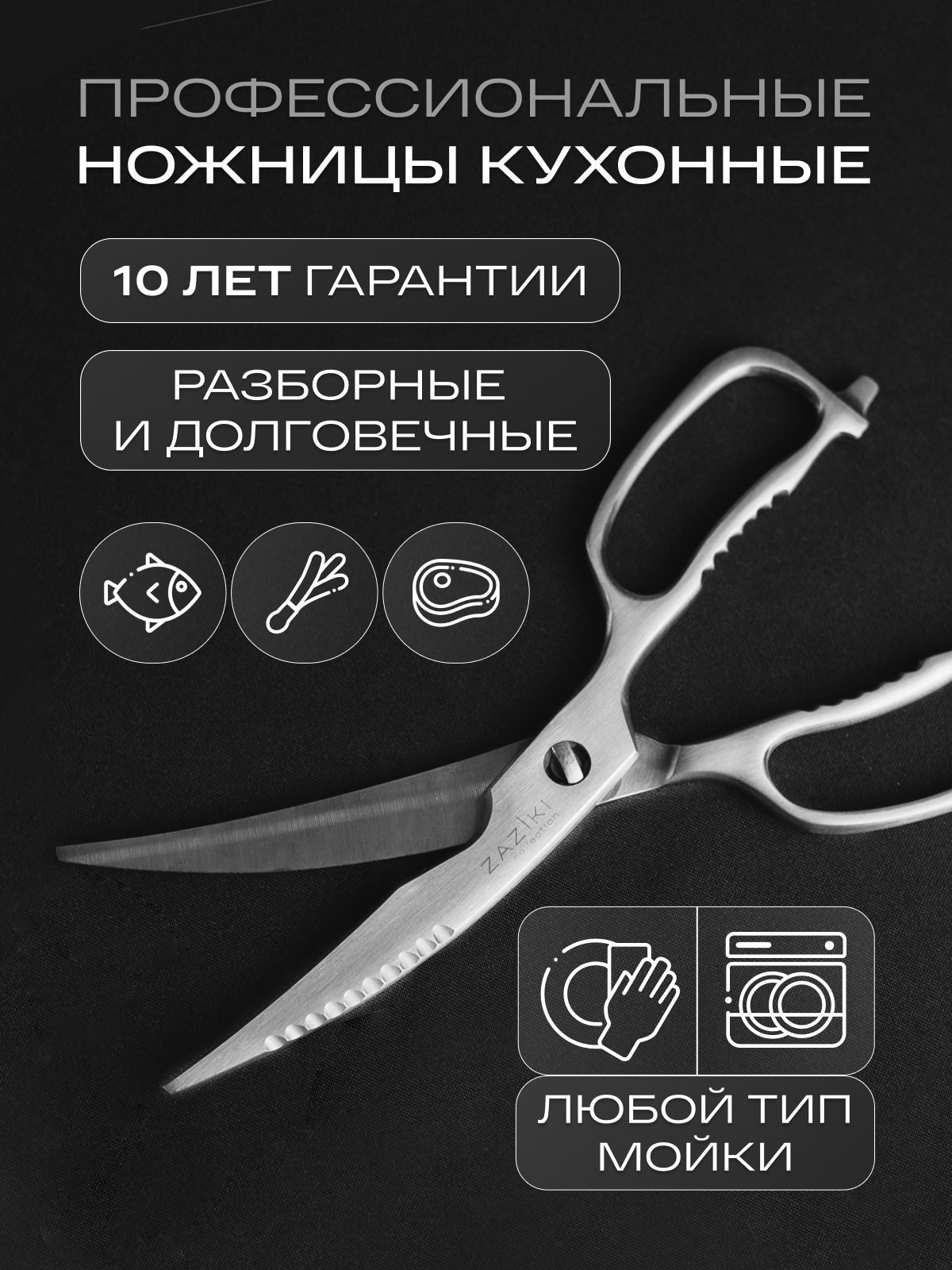 Благодаря своей надежности, прочности и функциональности, ножницы для кухни Zaziki станут незаменимым помощником, а также украсят ее своим внешним видом!
