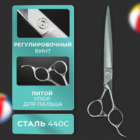 Ножницы для груминга прямые MOON BASE 7.5 75D — это профессиональный инструмент для стрижки собак и кошек. Они изготовлены из высококачественной стали, что обеспечивает их прочность и долговечность. Ножницы имеют эргономичные ручки, которые обеспечивают удобный и надёжный захват, снижая нагрузку на руку и предотвращая усталость во время продолжительных стрижек.