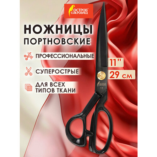 Ножницы портновские раскройные для ткани, кожи, шитья 290 мм, для творчества, рукоделия, черные, ручки с силиконовым покрытием, Остров Сокровищ, 665599: сравнение цен, характеристики, фото, актуальное наличие и цены.