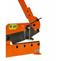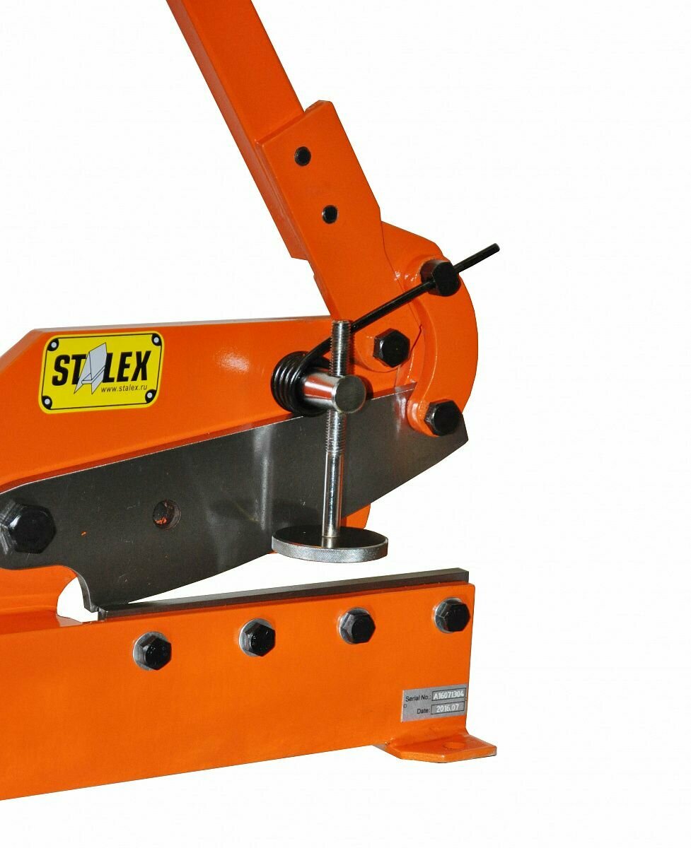 Ножницы ручные рычажные STALEX HS-8, арт. 372103 прочный универсальный резчик для листовой, полосовой стали, а так же круглого прутка. Станок способен резать круглые заготовки диаметром до 13 мм, листовая сталь толщиной до 6 мм и полосы размером до 70х6 мм. Ножницы оснащены прочным прижимом, регулируемым по высоте и высококачественными режущими ножами. Для резки круглого прутка на верхнем режущем ноже предусмотрено специальное отверстие.
