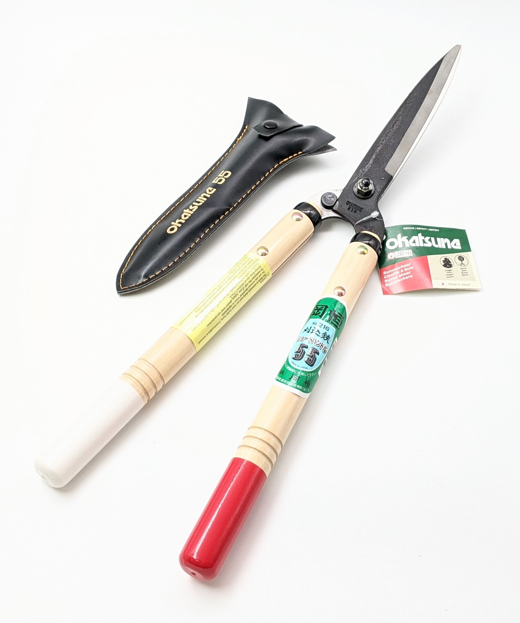 Короткие модельные ножницы для работы в узких местах. Комбинация лезвия длиной 145 мм и рукоятей длиной 300 мм идеально подходит для декоративного самшита или японского сада (o-karikomi). Также ножницами с короткими рукоятями удобно работать с стесненных пространствах и узких местах. Рукояти выполнены из японского белого дуба, они хорошо поглощают вибрации, поэтому работа с этими ножницами очень приятна. Лезвия выполнены из стали IZUMO YASUGI и имеют твердость по Роквеллу от 60,0 до 61,0. Лезвия остаются острыми в течение длительного времени - дают чистый и точный рез не прикладывая значительных усилий. Полная длина - 515мм. Масса - 740г. Производство Okatsune (Япония).