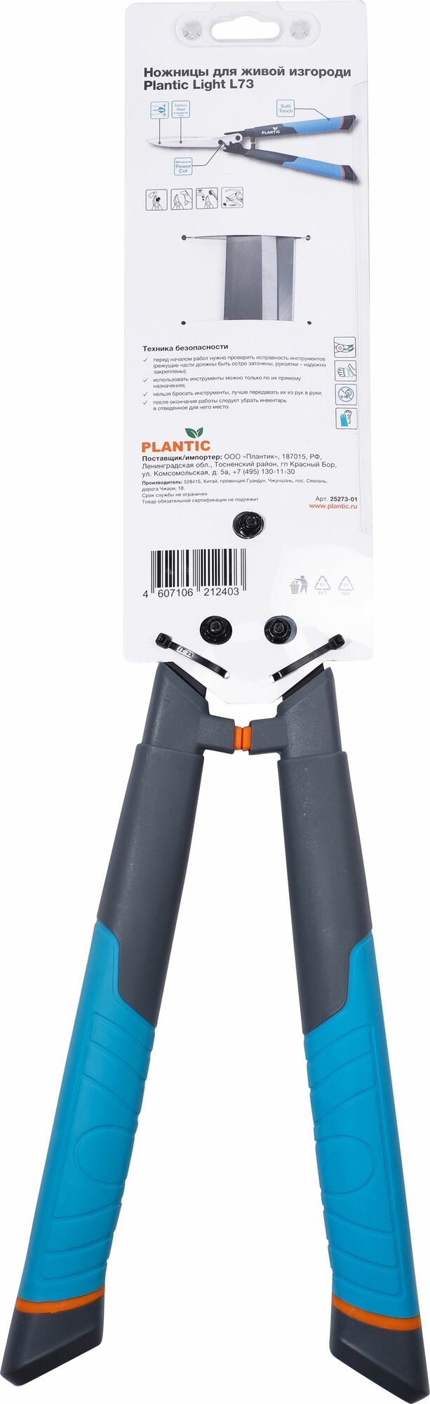 Надежные и легкие ножницы для живой изгороди Plantic Light L73 подходят для работы с самыми разнообразными кустами и ветками, обеспечивая идеальную форму. • Рычажный механизм PowerCut облегчает подрезку в 3 раза • Компактные ножницы с прочными и при этом легкими рукоятками • Заточенные лезвия из закаленной углеродистой стали гарантируют аккуратный срез • Комфортные рукоятки с покрытием SoftTouch