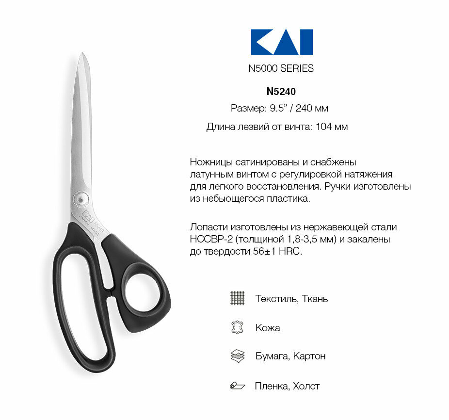 Купить Ножницы закройные KAI 5240, 24 см с доставкой по всей России. Ножницы закройные KAI 5240, 24 см: сравнение цен, характеристики, фото, актуальное наличие и цены.