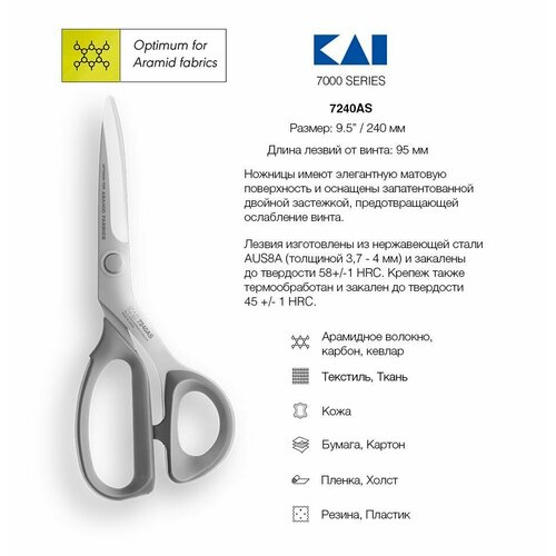 Купить Ножницы закройные KAI 7240 AS , 24 см с доставкой по всей России. Ножницы закройные KAI 7240 AS , 24 см: сравнение цен, характеристики, фото, актуальное наличие и цены.