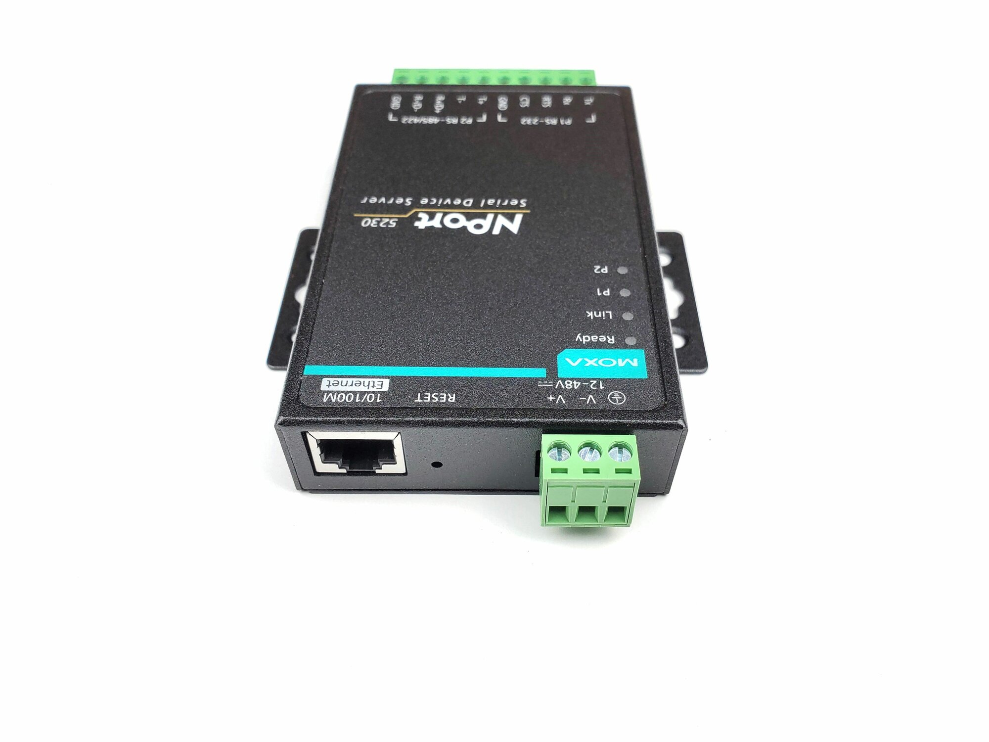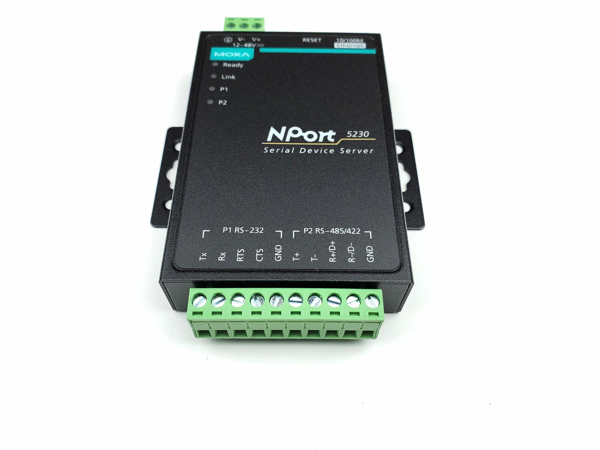 Преобразователь MOXA NPort-5230 – 2-портовый сервер последовательных интерфейсов RS-232 + RS-422/RS-485, который позволяет подключать устройства с к сетям TCP/IP для передачи данных через локальную сеть или Интернет без ограничения расстояния.
