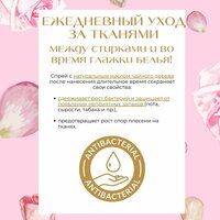 Подавляет рост бактерий, вызывающих неприятный запах, расправляет волокна, разглаживает складки.