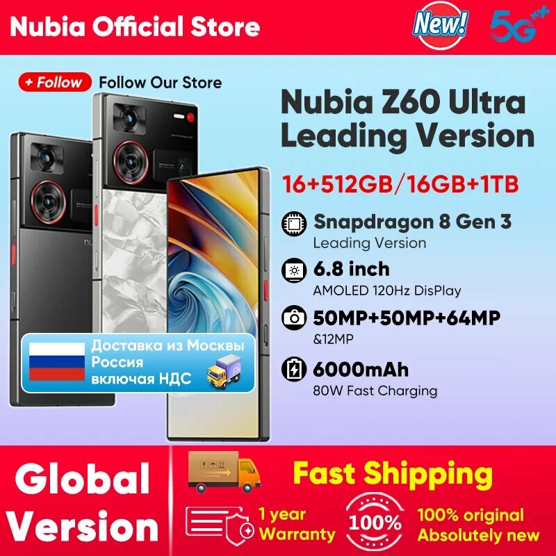 Купить Nubia Z60 Ultra Leading Version Глобальная версия 6,8 дюйма Небьющийся полноэкранный Snapdragon 8 Gen 3 MyOS 14.0 NFC 6000 мАч 80 Вт Быстрая зарядка с доставкой по всей России.