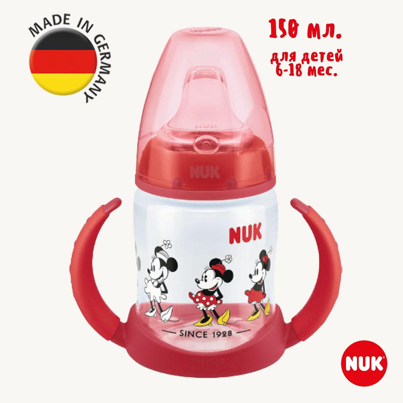 NUK FIRST CHOICE Бутылочка обучающая из полипропилена с индикатором температуры, 150 мл с насадкой из силикона и ручками: сравнение цен, характеристики, фото, актуальное наличие и цены.