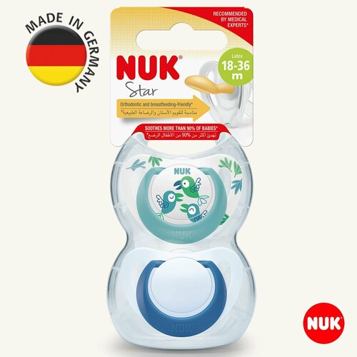 Купить NUK STAR ортодонтическая соска пустышка из латекса, размер 3, 2 шт. в контейнере, синяя и голубая птицы с доставкой по всей России. NUK STAR ортодонтическая соска пустышка из латекса, размер 3, 2 шт. в контейнере, синяя и голубая птицы: сравнение цен, характеристики, фото, актуальное наличие и цены.