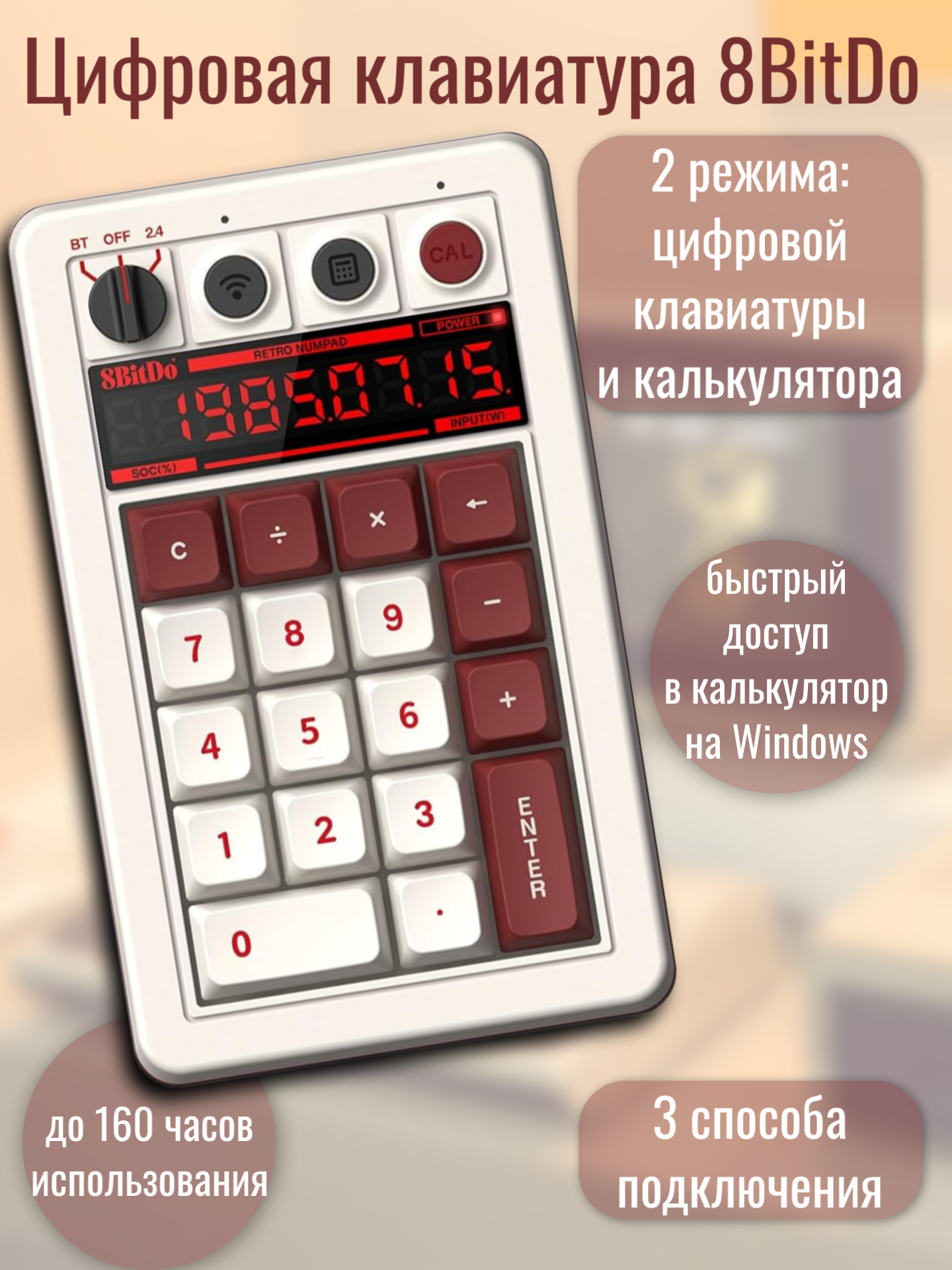Нумпад, цифровая клавиатура 8BitDo Retro 18 Mechanical Numpad Fami Edition, с режимом калькулятора: сравнение цен, характеристики, фото, актуальное наличие и цены.
