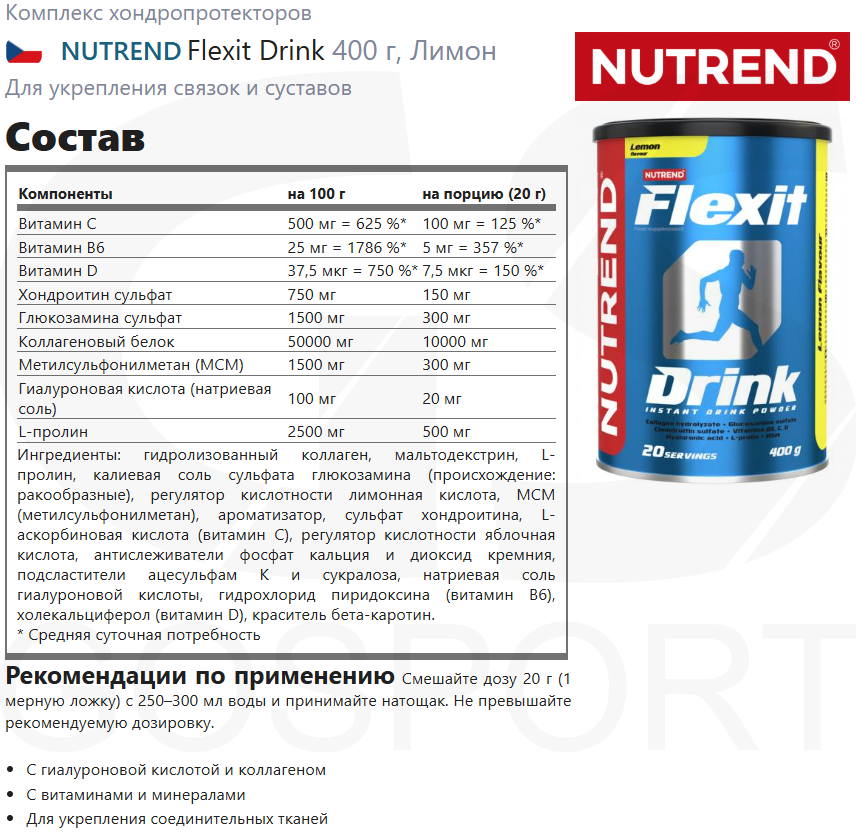 NUTREND Flexit Drink 400 г, Лимон: сравнение цен, характеристики, фото, актуальное наличие и цены.
