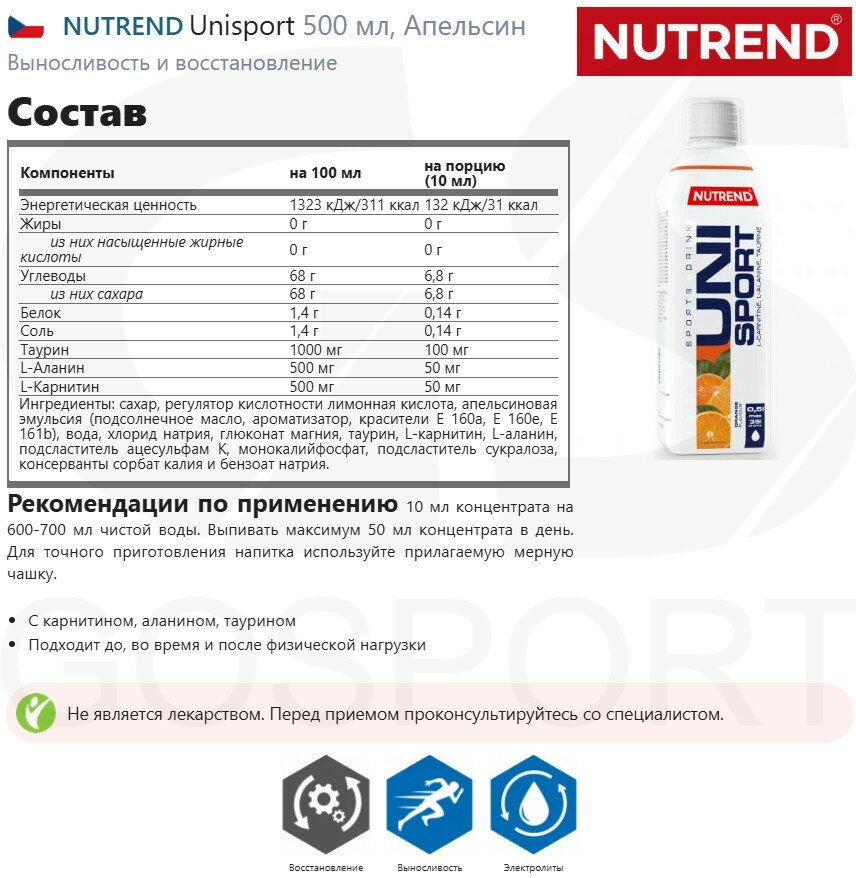 NUTREND Unisport 500 мл, Апельсин: сравнение цен, характеристики, фото, актуальное наличие и цены.