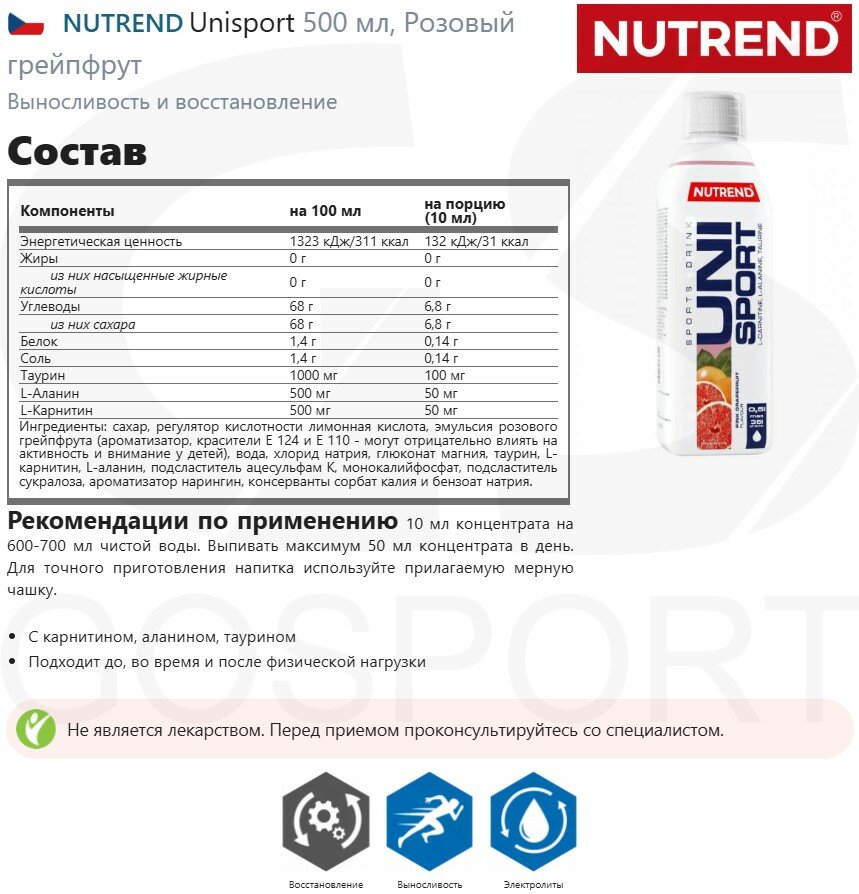 NUTREND Unisport 500 мл, Розовый грейпфрут: сравнение цен, характеристики, фото, актуальное наличие и цены.