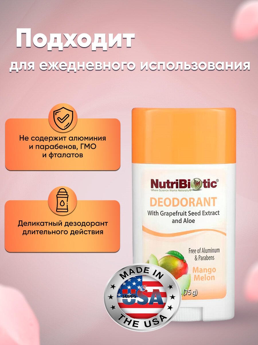 NutriBiotic дезодорант, дыня с манго, 75 г: сравнение цен, характеристики, фото, актуальное наличие и цены.