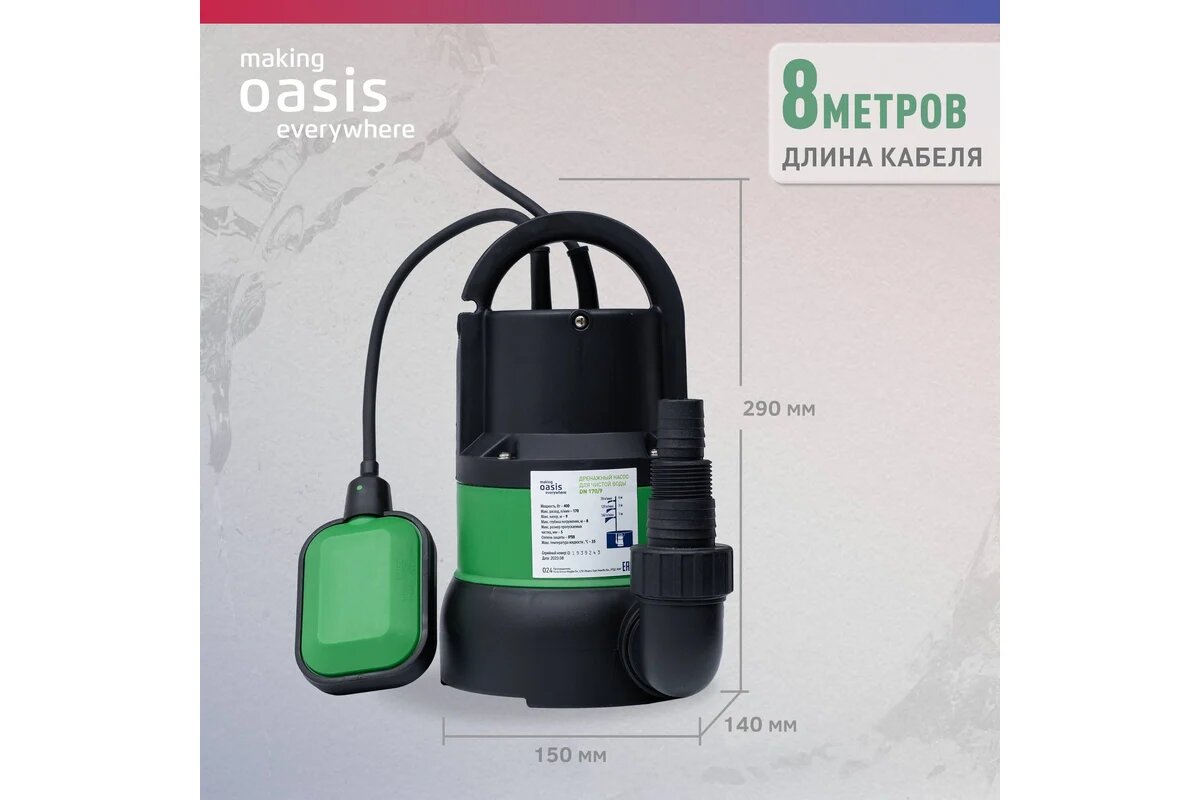 OASIS Дренажный насос для чистой воды DN 170/9 4670004376898: сравнение цен, характеристики, фото, актуальное наличие и цены.