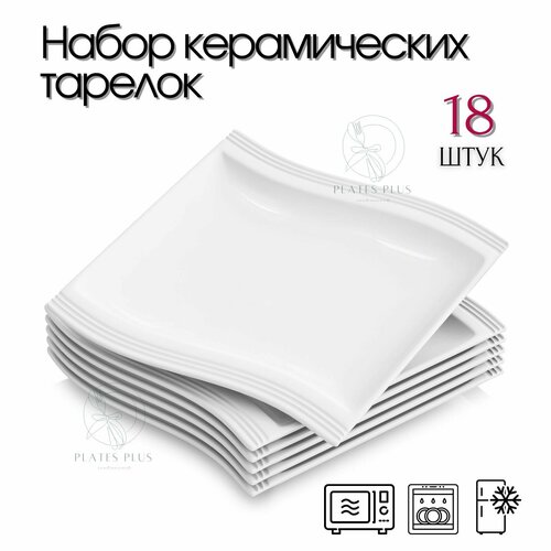 Этот элегантный набор из 18 квадратных тарелок — прекрасный выбор для создания стильной сервировки и добавления нотки роскоши на вашем столе. Каждая тарелка размером 25,7 × 25,3 × 1,8 см имеет современную квадратную форму, которая удобна и универсальна для подачи разнообразных блюд — от основных до десертов и закусок.