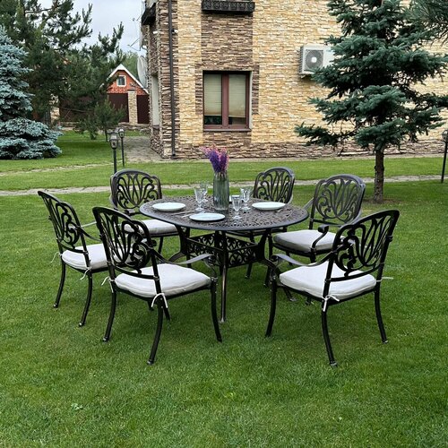 Обеденный комплект из литого алюминия Royal Family WILHELM на 6 персон с овальным столом: сравнение цен, характеристики, фото, актуальное наличие и цены.