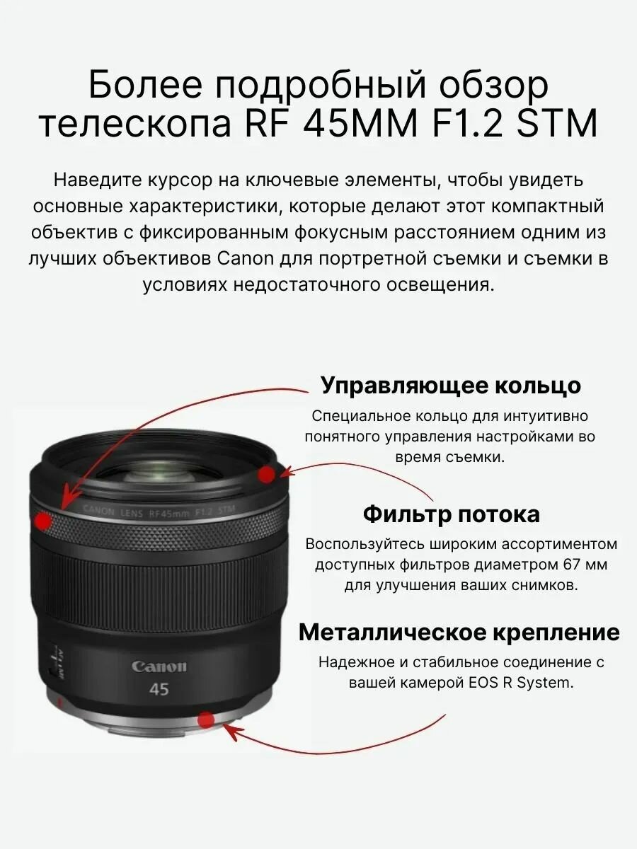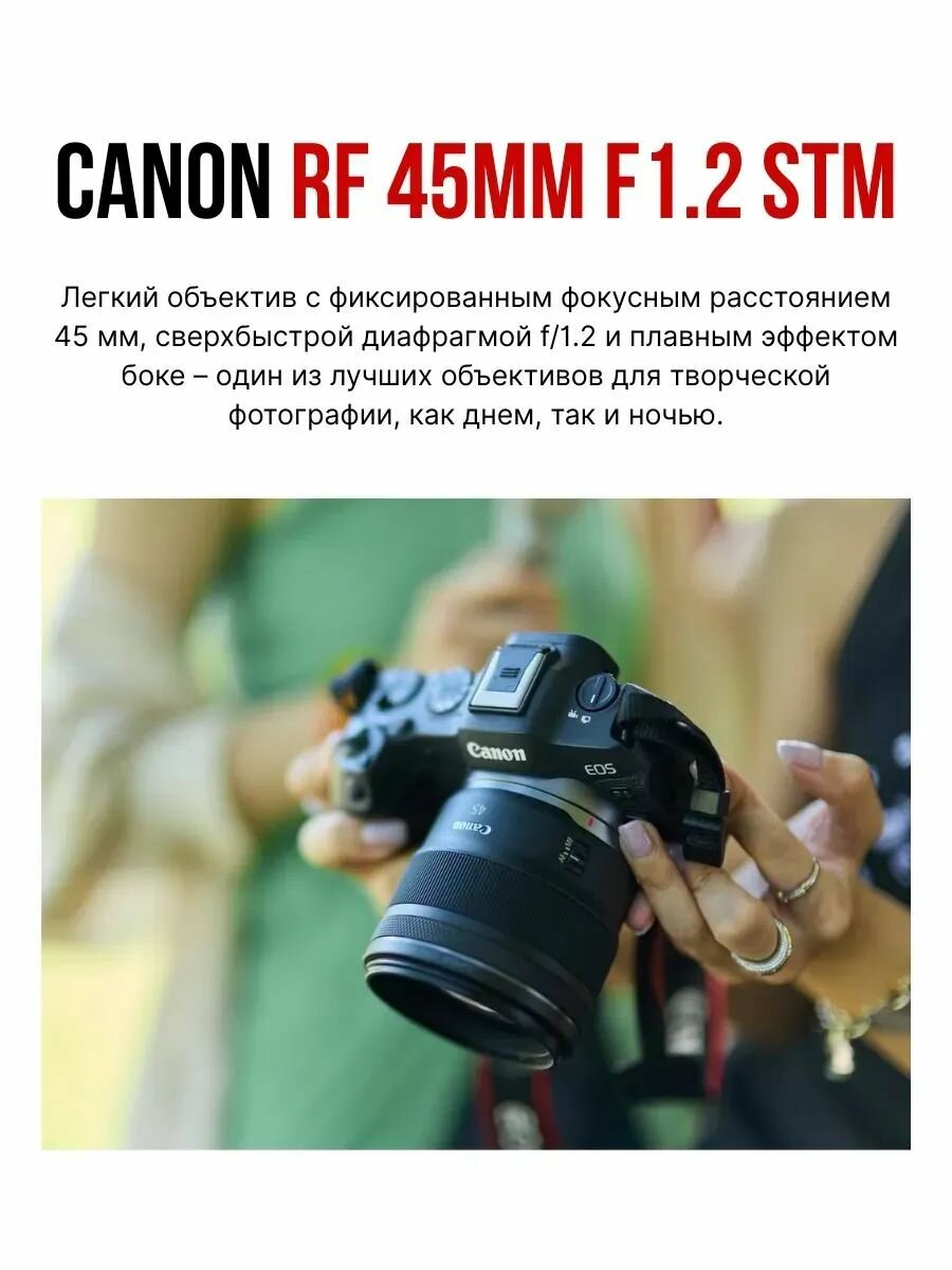 Купить Объектив Canon RF 45mm f/1.2 STM с доставкой по всей России. Объектив Canon RF 45mm f/1.2 STM: сравнение цен, характеристики, фото, актуальное наличие и цены.