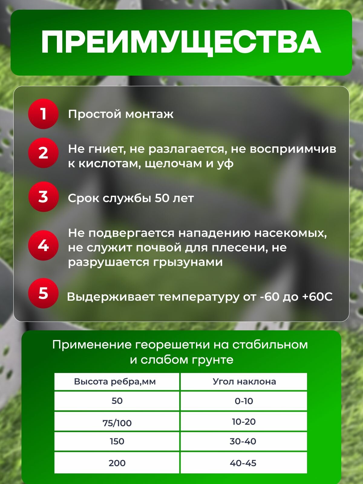 Объемная георешетка 50х160х160 площадь 16.2м2 для парковок; садовых дорожек; укрепления склонов: сравнение цен, характеристики, фото, актуальное наличие и цены.