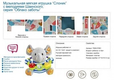 Облако заботы Игрушка развивающая Слоник, мелодии Шаинского, свет 811-1 с 6 месяцев: сравнение цен, характеристики, фото, актуальное наличие и цены.