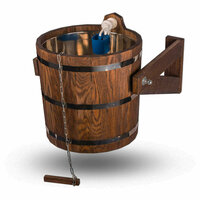 Система автоматического наполнения емкости от водопровода. Классический "русский душ" для Вашей бани или сауны. Кронштейны крепятся к стене или потолку, необходима гибкая подводка к водопроводу. В комплекте кронштейн для крепления, клапан набора воды, цепочка. Внешние размеры ёмкости: диаметр 35 см, высота 36 см, высота по выступу 41 см. Максимальная ширина емкости с кронштейнами около 46 см. Объем 20л. Сделано в России.