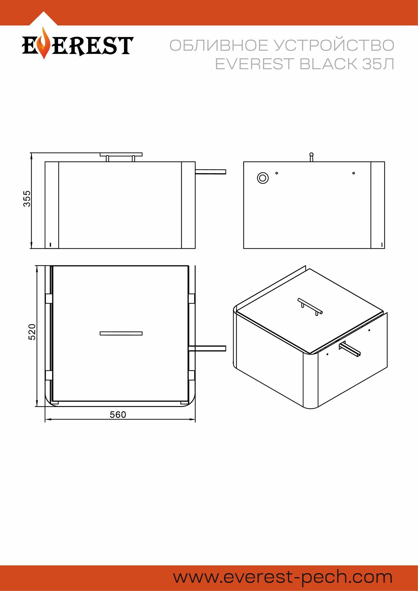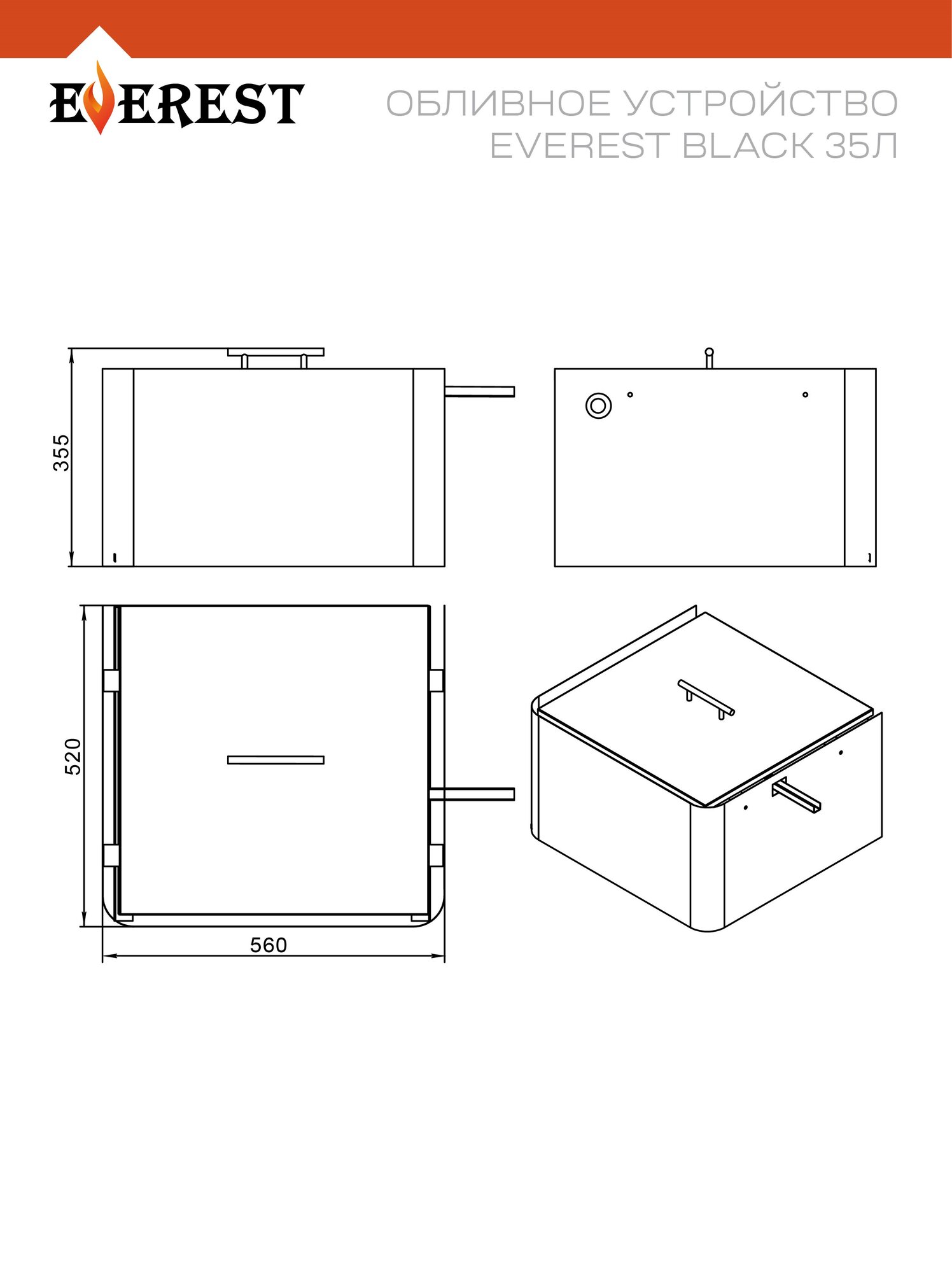 Обливное устройство эверест представляет собой бак из нержавеющей стали, автоматически наполняемый водой. Количество воды в баке регулируется с помощью клапана подачи воды. Максимальный объём воды в баке – 35 литра.