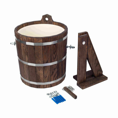 | Подробная комплектация | Обливное устройство из кавказского дуба 20л. - 1 шт. 1. Ведро в сборе - 1 шт. 2. Кронштейн левый – 1 шт. 3. Кронштейн правый – 1 шт. 4. Ручка деревянная в сборе – 1 шт. 5. Шайба 10 – 4 шт. 6. Контргайка – 2 шт. 7. Гайка колпачковая – 2 шт. 8. Устройство наливное в сборе – 1 шт. 9. Прокладка – 1 шт. 10. Гайка – 1 шт. 11. Дюбель – 6 шт. 12. Саморез – 6 шт. 13. Шайба 6 – 6 шт. 14. Саморез – 1 шт. |