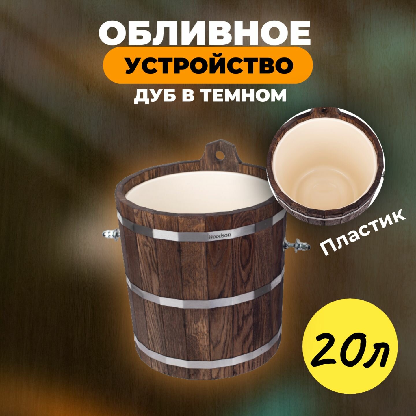Обливное устройство для бани Woodson 20 л, с пластиковой вставкой и креплением, дуб в темном: сравнение цен, характеристики, фото, актуальное наличие и цены.