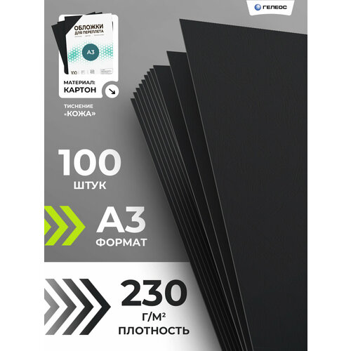 Обложки для переплета картонные А3 гелеос придадут документам презентабельный внешний вид, защитят от неблагоприятный внешних факторов. Обложки для брошюратора (биндер, переплетчик) черные гелеос можно использовать при переплете на пластиковую и металлические пружины. Подойдут для работы в офисе, минитипографии, школе, учебных заведениях и дома для любого вида документов или творчества. Одной упаковки хватит на оформление 50 документов, с учетом использования 2 обложек на документ.