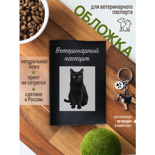 Кожаная обложка на кошачий паспорт имеет элегантный принт на тематику породы кошек - черный кот/кошка.