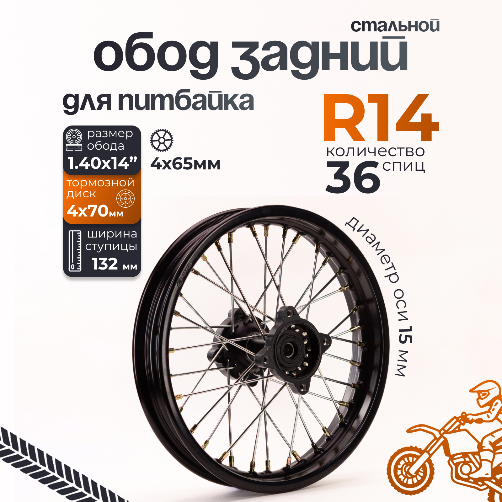 Задний обод колеса для питбайка R14 1.85х14 усиленный 36 спиц: сравнение цен, характеристики, фото, актуальное наличие и цены.