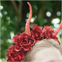 Женский ободок с красными розами и дьявольскими рогами Прекрасный аксессуар для вечеринки или фотосессии в стиле Хэллоуин или Готика. Будь уникальной и неповторимой. Высота рогов - 15 см, диаметр роз - 9-10 см. каждая роза сделана вручную. Ободок легкий в носке. Короны от нашей студии - это произведения искусства, каждое изделие оригинально сделано с любовью и страстью. Каждое изделие несет в себе наш собственный стиль, наше ноу-хау. Это уникальная ручная работа.