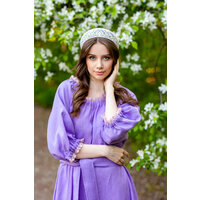 Ободок округлой формы декорирован вышитыми листьями лаванды на светло-бежевом фоне. Вышивка выполнена вискозными нитями по авторскому дизайну мастерской. Также в нашем магазине вы найдете Кокошник остроконечной формы с такой же вышивкой, артикул 5624536717