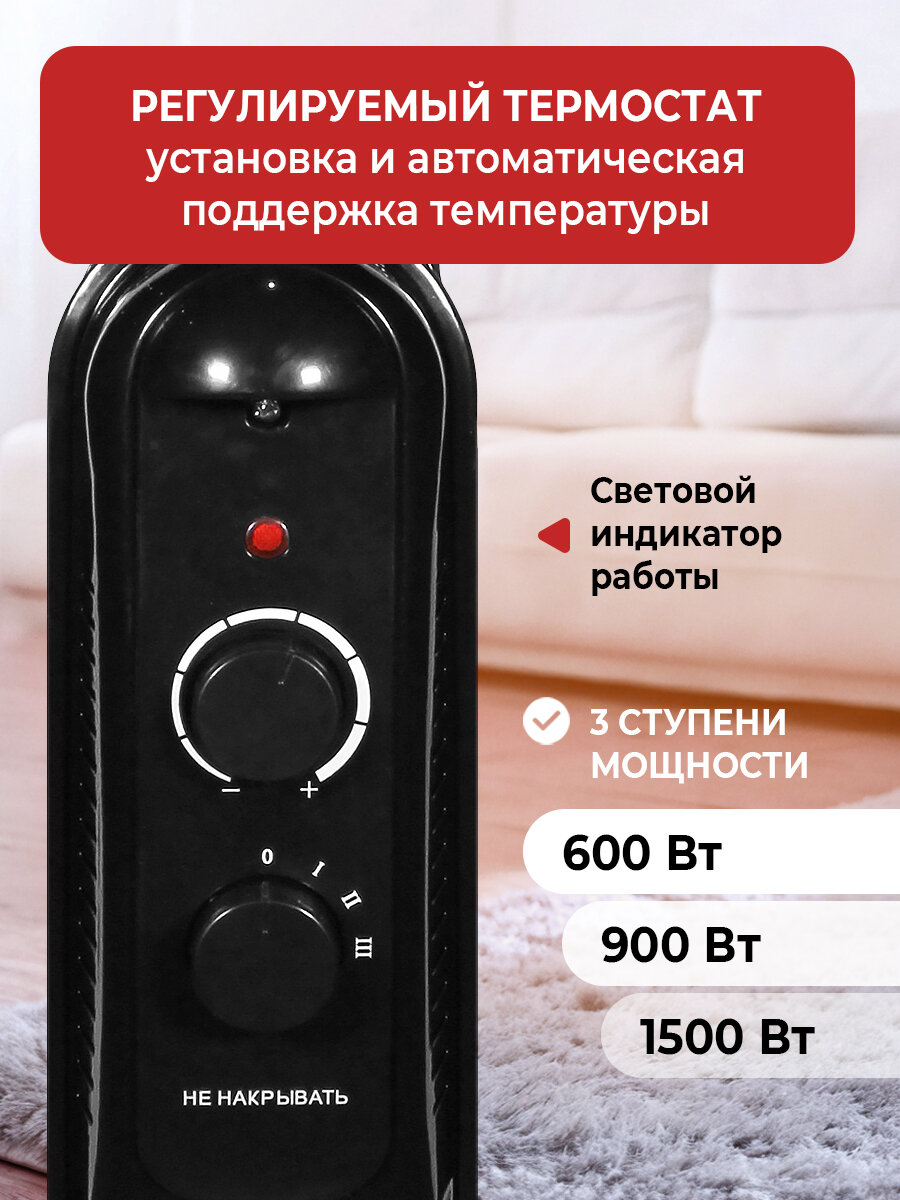 Обогреватель для дома DAMENTO RO-7В/ масляный радиатор 7 секций, 1500 Вт