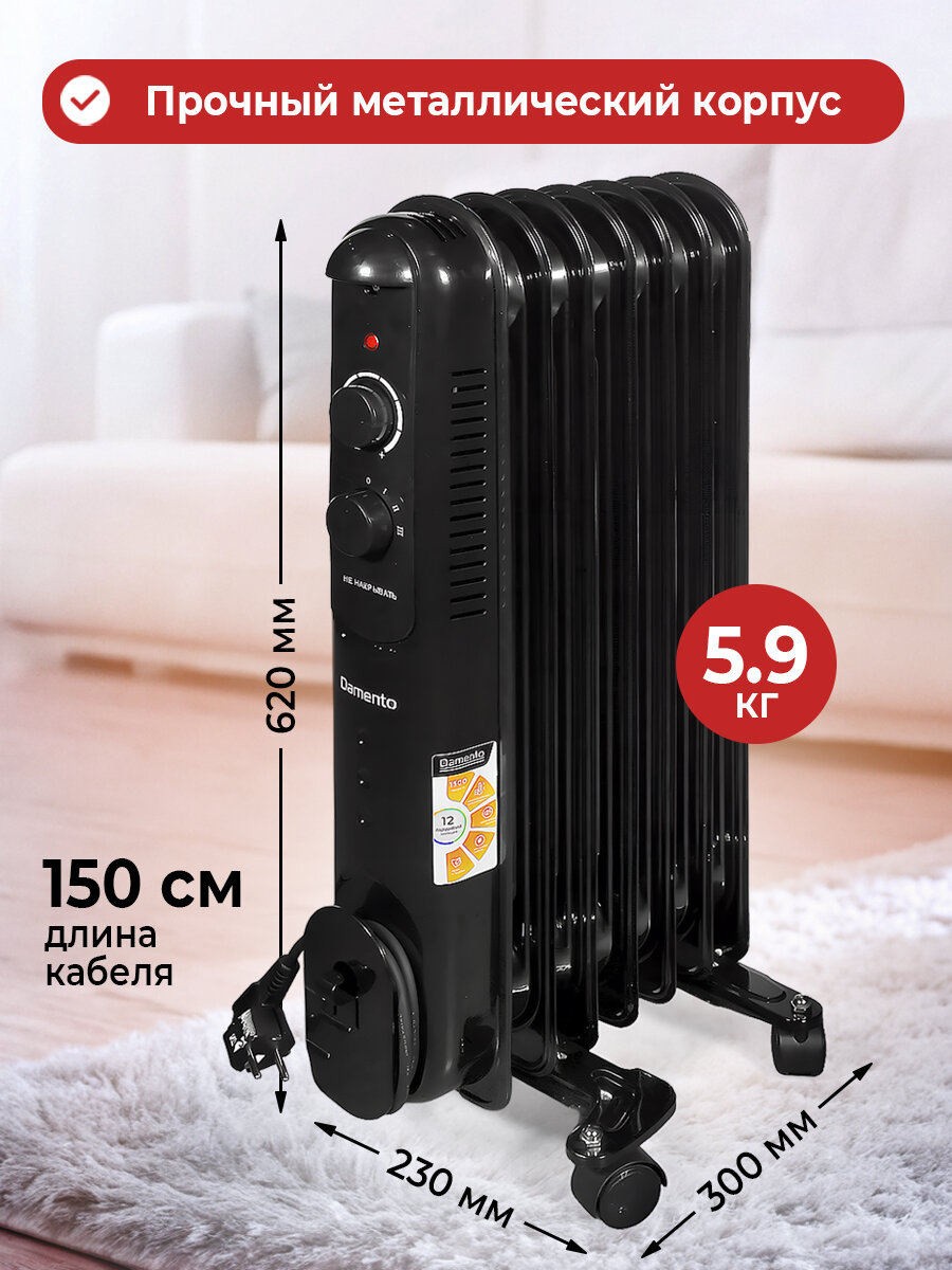 Обогреватель для дома DAMENTO RO-7В/ масляный радиатор 7 секций, 1500 Вт: сравнение цен, характеристики, фото, актуальное наличие и цены.